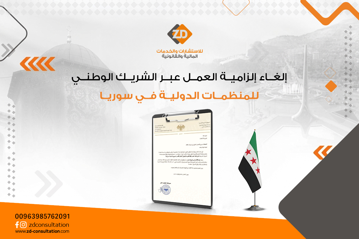 إلغاء إلزامية العمل عبر الشريك الوطني للمنظمات الدولية في سوريا أصدرت وزارة الخارجية والمغتربين – مديرية التعاون الدولي تعميماً يتعلق بتنظيم آلية العمل في المشاريع والبرامج الممولة دولياً،... 01 أبريل, 2026